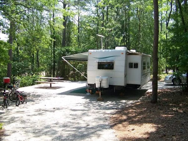 Barnwell State Park in Blackville South Carolina offers full, partial, and primitive (no water, electric, or sewer) hookup RV and tent camping in a park best known for its great fishing spots. Three small lakes host a large population of crappie, bream, bass and catfish.