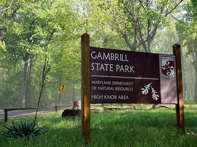 Cunningham Falls State Park in Thurmont Maryland offers primitive and partial hookup RV and tent camping located in the picturesque Catoctin Mountains. It is divided into two separate but unique areas. The William Houck Area located three miles west of Thurmont on Route 77 has the lake area, falls and camping area. The Manor Area off Route 15 three miles south of Thurmont has the Scales and Tales Aviary, camping and the historic Catoctin Iron Furnace.