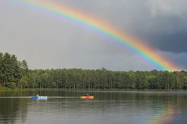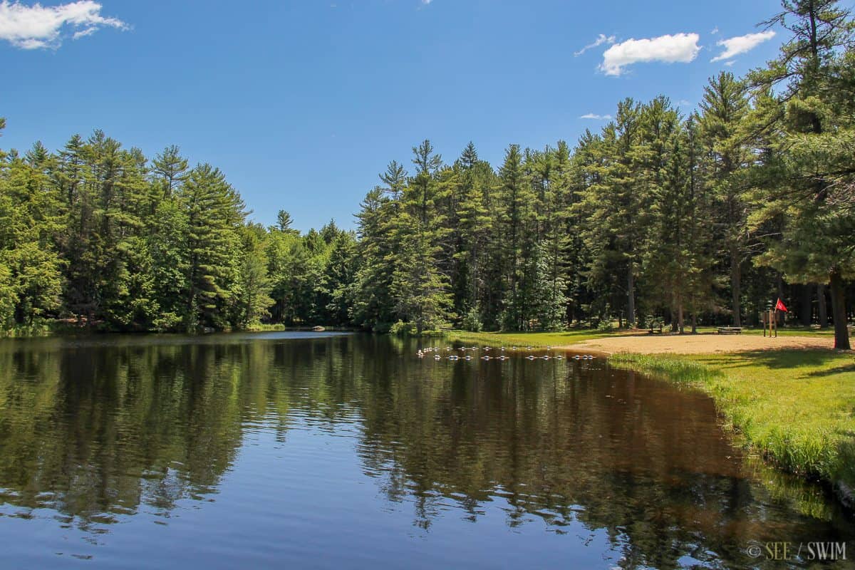 Erving State Forest in Erving Massachusetts offers primitive tent and RV camping in a forested setting near a recreational lake.