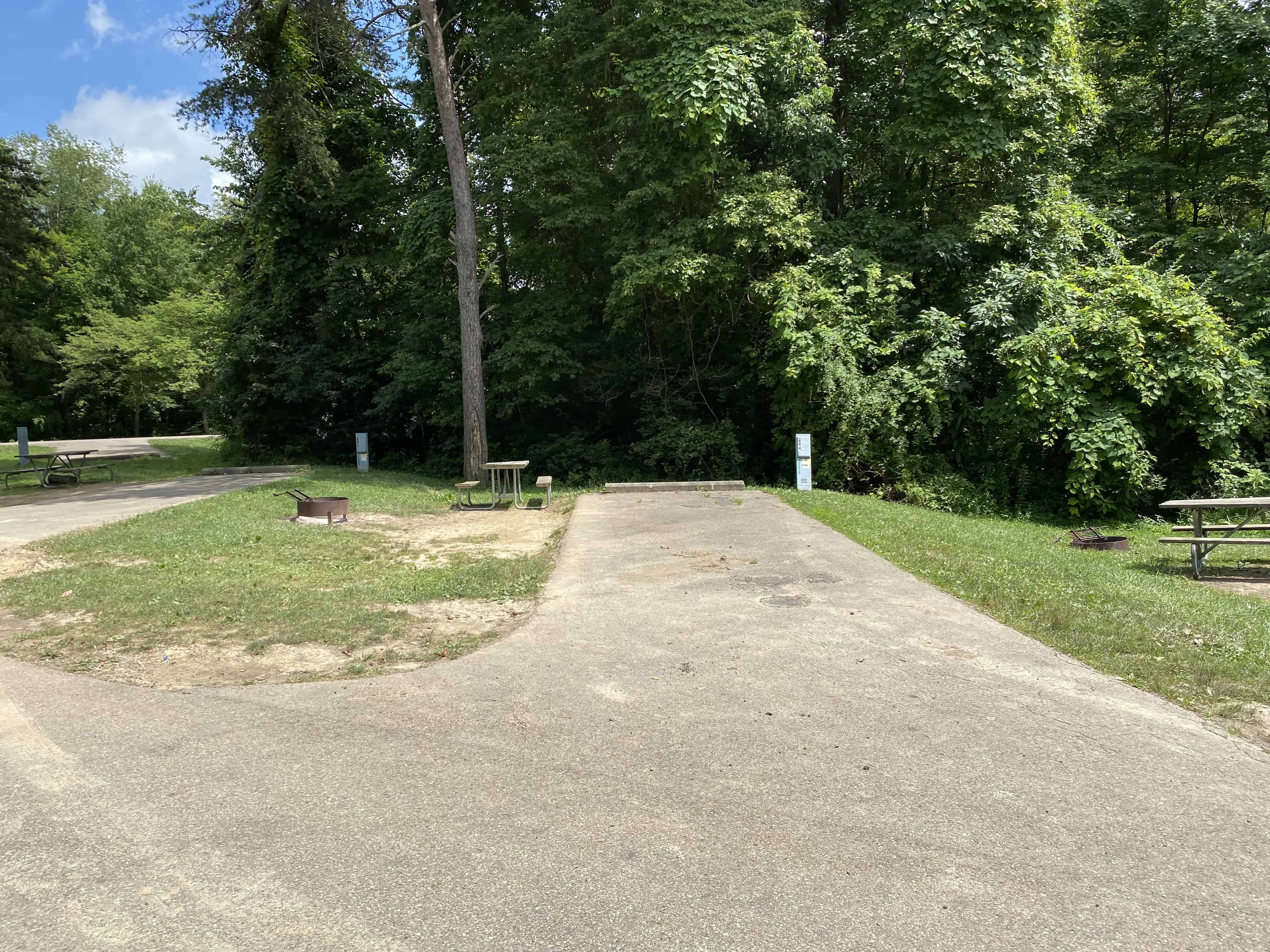 Lake Alma State Park in Wellston Ohio offers partial and primitive (no water, electric, or sewer) hookup RV and tent camping adjacent to a small recreational lake.