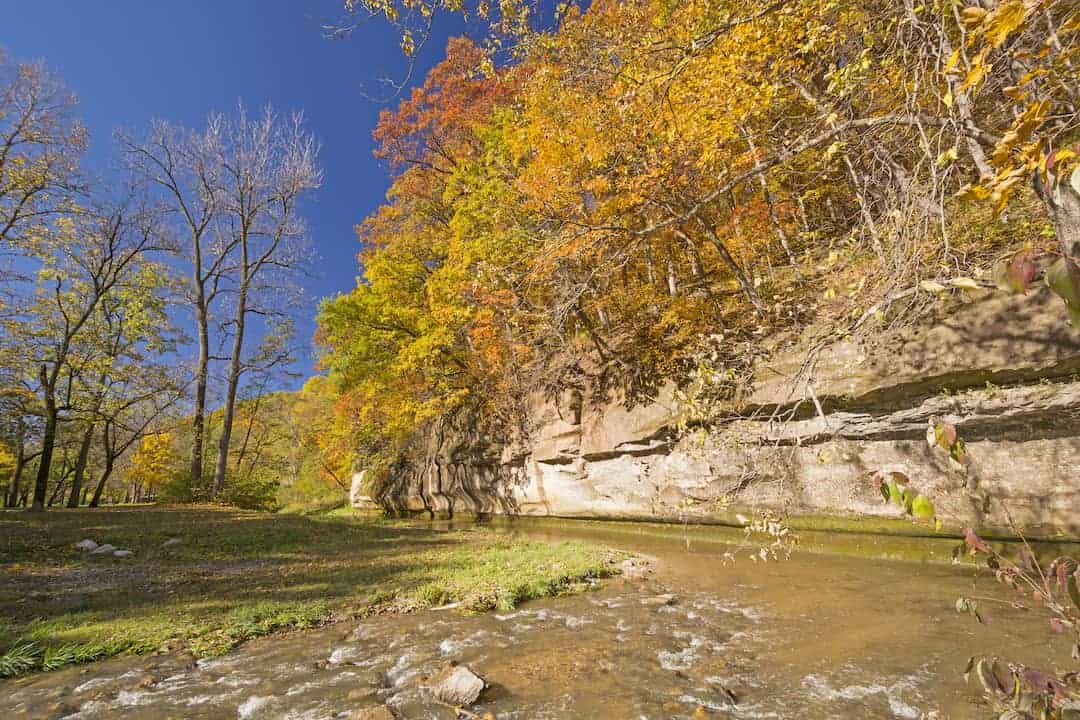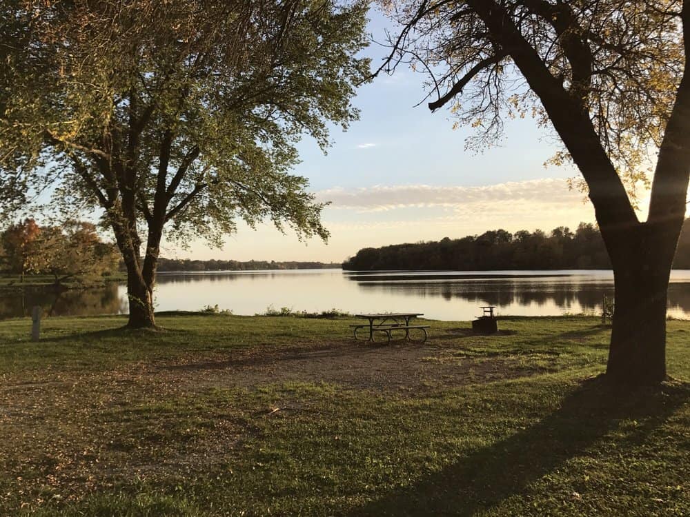 Lake Keomah State Park in Oskaloosa Iowa provides partial and primitive (no water, electric, or sewer) hookup RV and tent camping in a wooded setting near the shores of a recreational lake.