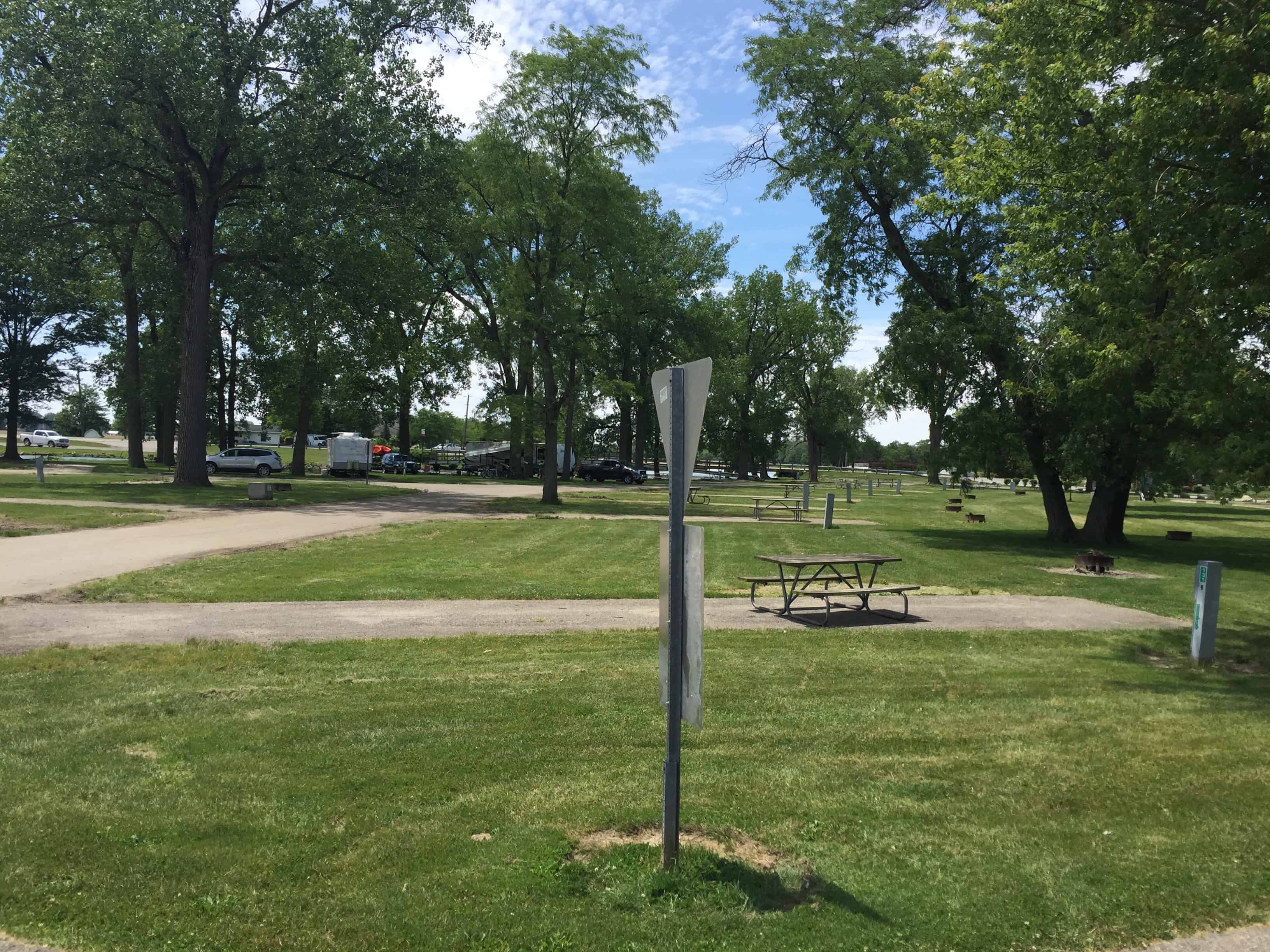 Lake Loramie State Park in Minster Ohio offers partial and primitive (no water, electric, or sewer) hookup RV and tent camping adjacent to a quiet fishing lake near a historic canal.