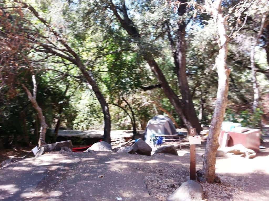 Potwisha Campground in Sequoia and Kings Canyon National Park located 4 miles (6.5 km) from the Sequoia National Park entrance. Situated along the Middle Fork of the Kaweah River under an open stand of oaks, the campground is hot in the summer and usually snow-free in the winter. Primitive tent and RV sites this campground is popular with its paved roads and sites for tent or RV camping. A dump station (located across the highway) is available along with potable water. Some sites allow generator use while others do not, check before reserving.