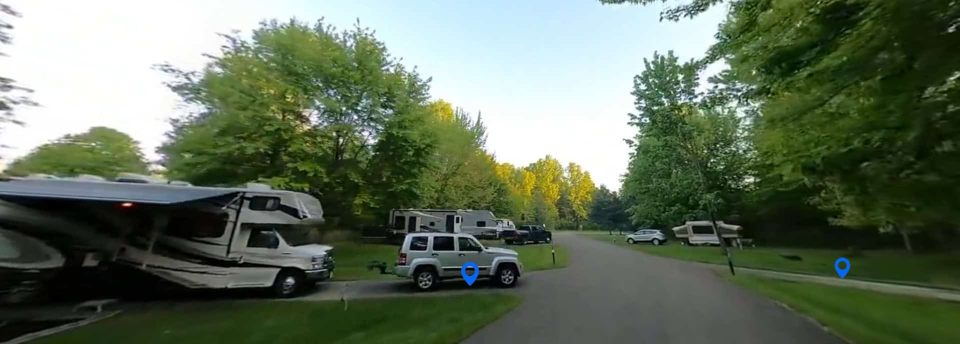 Pymatuning State Park in Andover Ohio offers partial hookup RV and tent camping near a recreational lake. Some sites available for seasonal stays.
